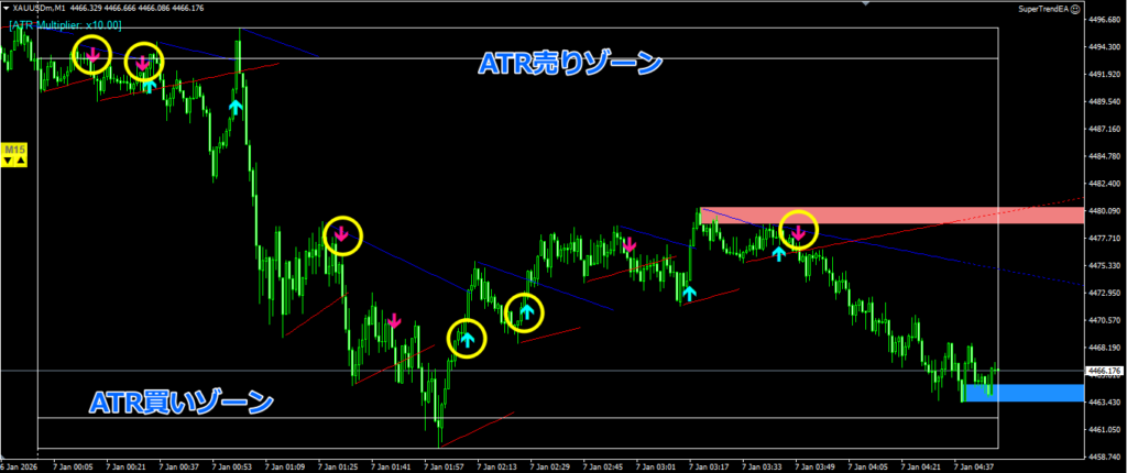 - GOLDは1分足であってもボラが大きく、買えば下がり、売れば上がる場面に多々出会います。