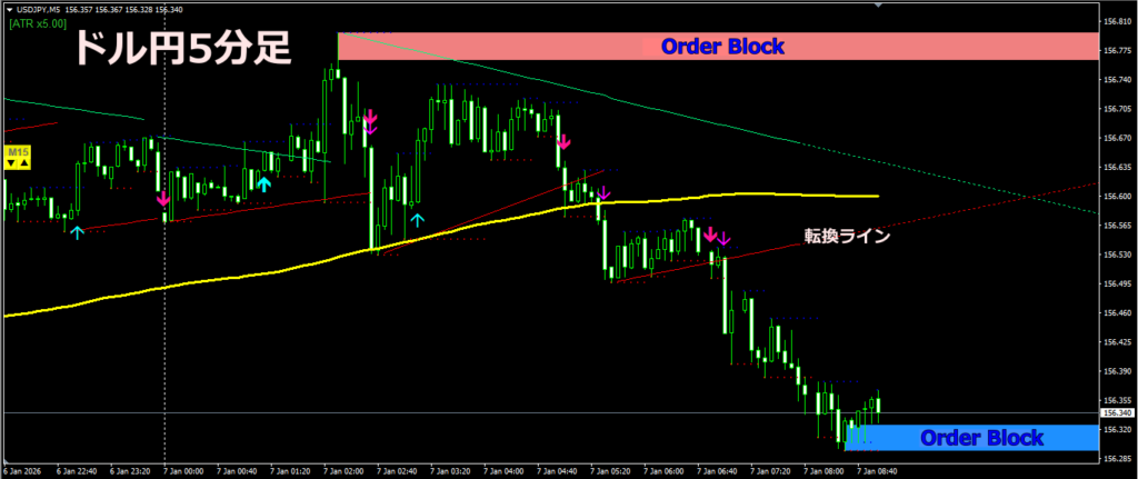 ボラの関係で、ドル円1分足は現実的ではありません。一般の通貨ペアでは5分足や15分足が対象になります。