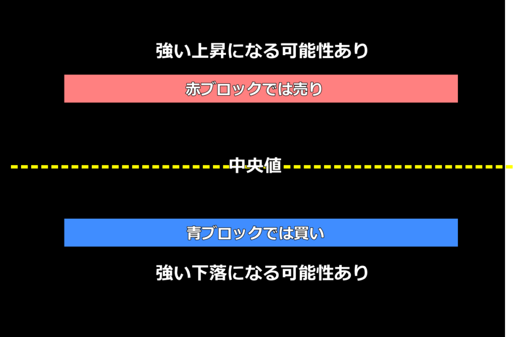 - プロトレーダー: 「自分の手法を100回繰り返せば、トータルで利益が出る」という優位性(期待値)に確信を持っています。一回ごとの結果には執着せず、淡々と試行回数(優位性が高いと決めたルール)を稼ぐことに集中します。また、プロのポジション取りはゾーン買いで、1点買いではないことも大きな違いです。個人の場合でも、ロットを分割しブロックのゾーン内で複数のポジション取りをすることも優位性を高めます。単に逆行してナンピンをする、という意味ではないので注意してください。